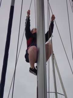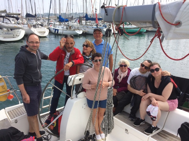 Suite à un orage suivi d’un grain en milieu d’après midi, la navigation du samedi a du être écourtée après un beau début de navigation. Ça a été l’occasion d’aborder des cours théoriques de cartes, de sécurité et la découverte de l’utilisation de la chaise de mat !!!