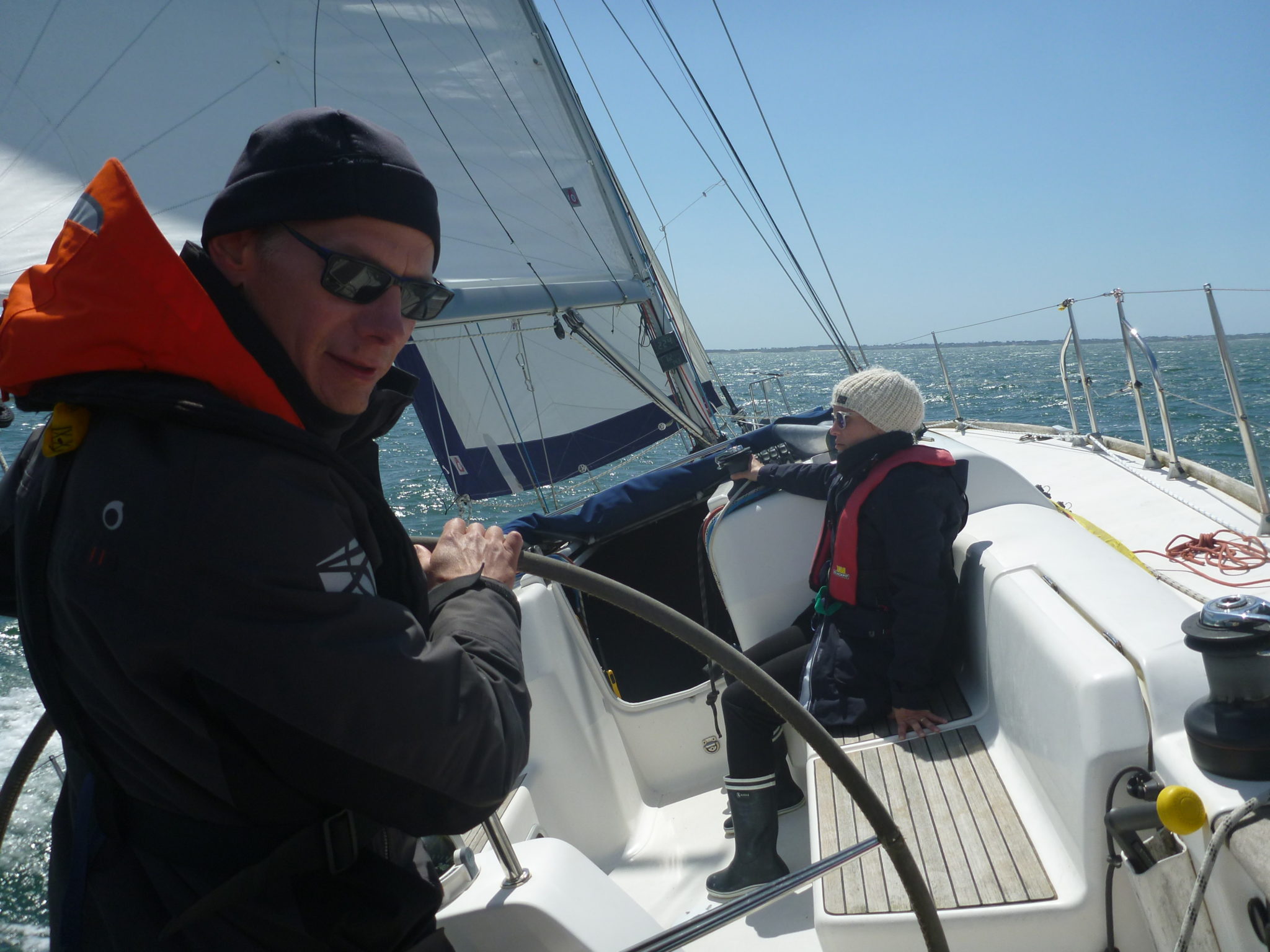 Après 2 jours de prise en main du bateau avec des navigations en Baie de Quiberon, direction Belle Ile pour anticiper le BMS du mercredi !